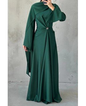 Le ampie maniche e il taglio fluido conferiscono movimento e grazia, rendendo questo abito perfetto per fidanzamenti, feste e tutte le occasioni speciali in cui desideri distinguerti con stile. La nostra modella indossa la taglia più piccola.