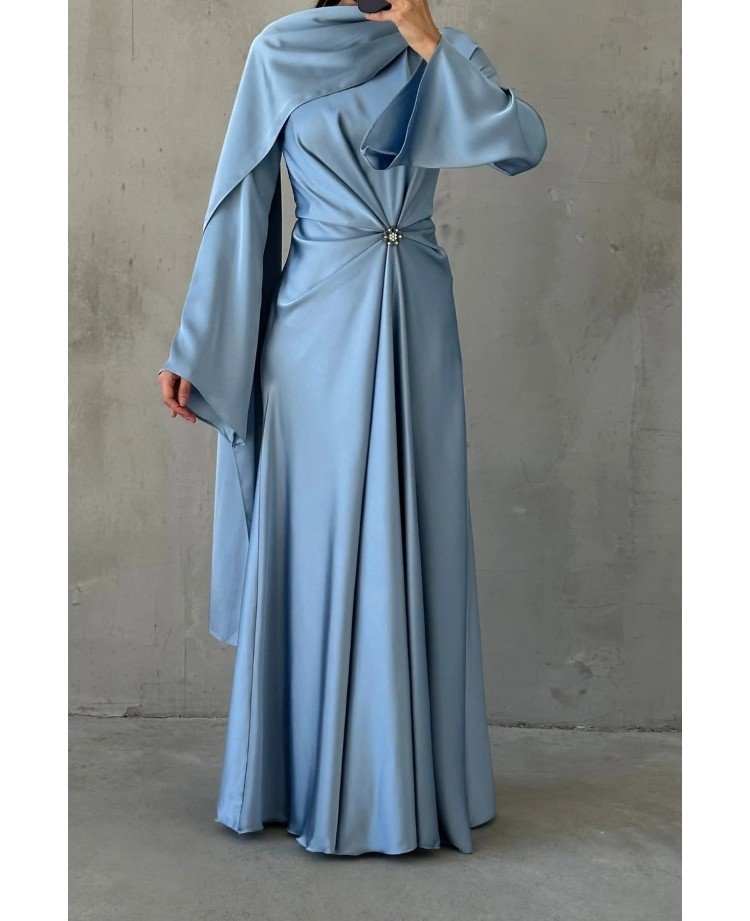 Abito hijab in raso fluido con dettagli raffinati