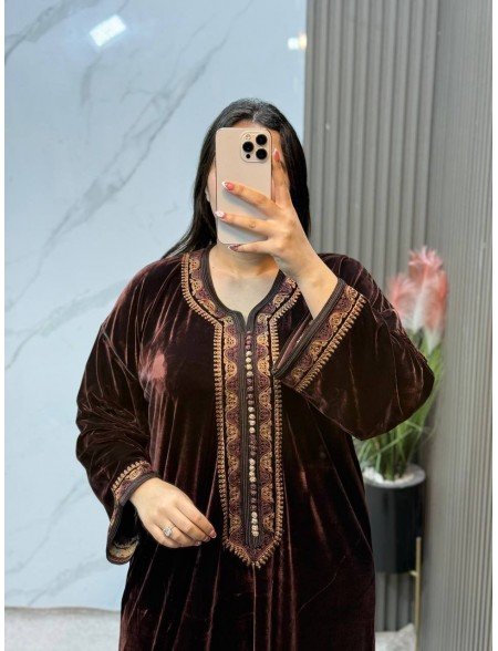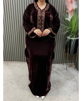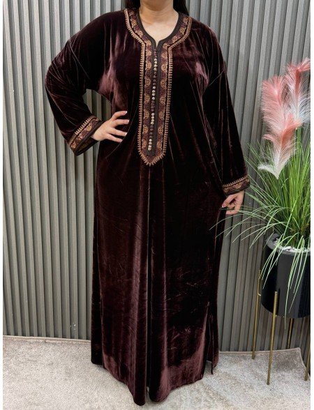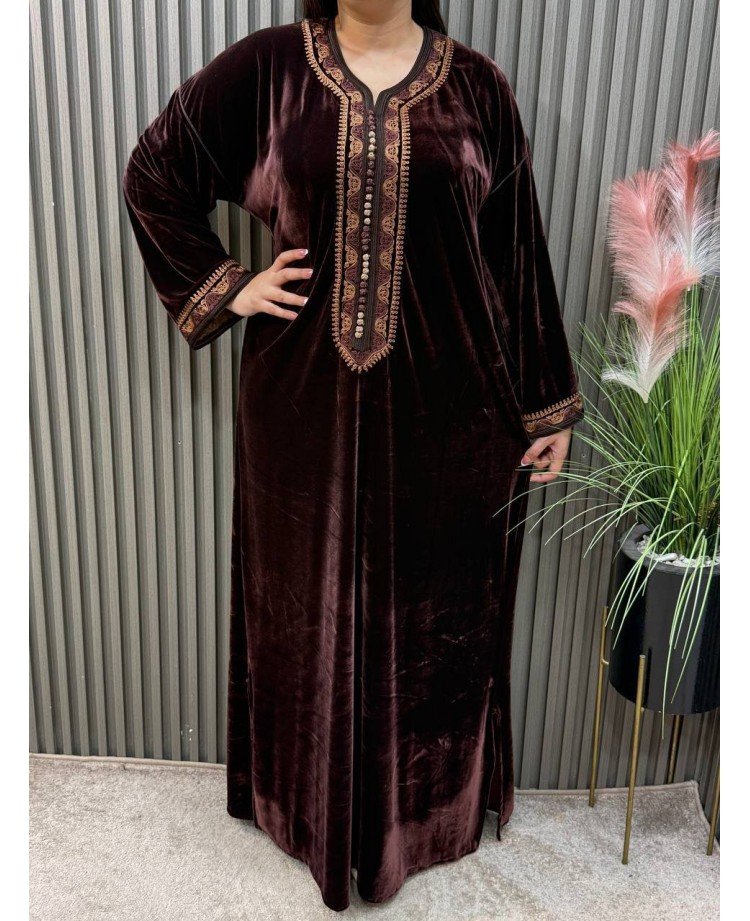 Tessuto: Realizzato in un velluto di seta royale, noto per la sua lucentezza cangiante e la sua caduta fluida e pesante, che conferisce un aspetto maestoso.
