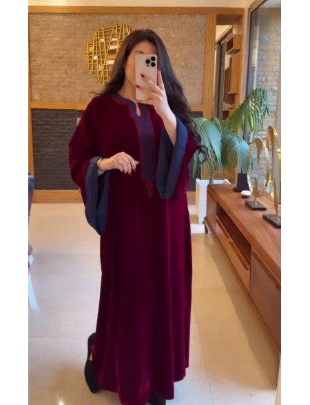 Tessuto: Realizzato in un velluto di seta royale, noto per la sua lucentezza cangiante e la sua caduta fluida e pesante, che conferisce un aspetto maestoso.