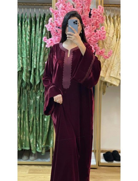 Tessuto: Realizzato in un velluto di seta royale, noto per la sua lucentezza cangiante e la sua caduta fluida e pesante, che conferisce un aspetto maestoso.